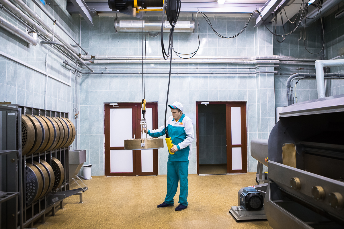 Сотрудник ОАО «Лидахлебопродукт» в помещении для хранения матрицы