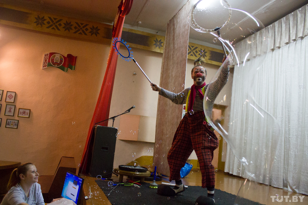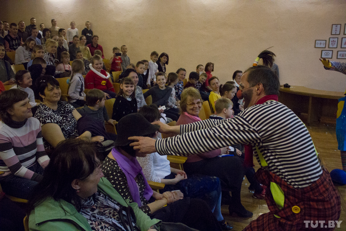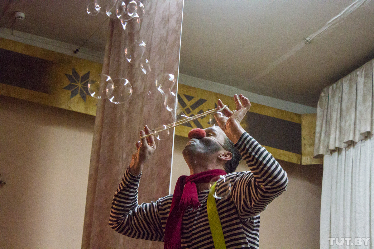«Нас всех нужно лечить — смехом», — совершенно серьезно говорит клоун Жорик. Точнее, бобруйчанин Юрий Светлаков. Единственный в городе сценический клоун — по образованию электрогазосварщик, по жизни столяр. Он регулярно бесплатно выступает перед особенными детьми и маленькими пациентами онкобольницы. А еще он провел уже второй клоунский фестиваль в Бобруйске — единственный подобный в стране. Но дети, говорит, важнее. В том числе те, которые спят во взрослых дяденьках и тетеньках.