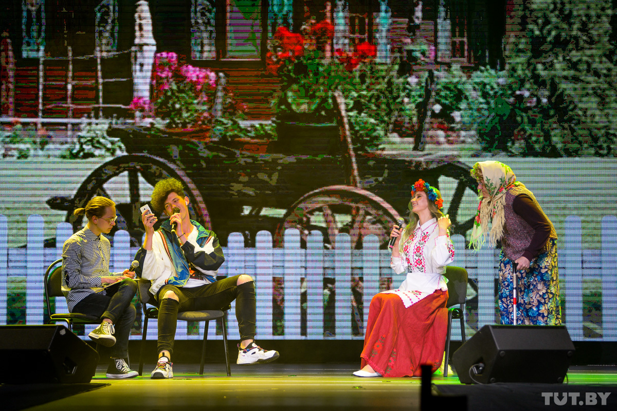 Команда этой участницы показывала юмористическую сценку. Сюжет: видеоблогер приехал в деревню пообщаться с коренными жителями и носителями белорусского языка, но удивлялся таким белорусским словам как «трусы», «бабка», «калдуны», «дыван».