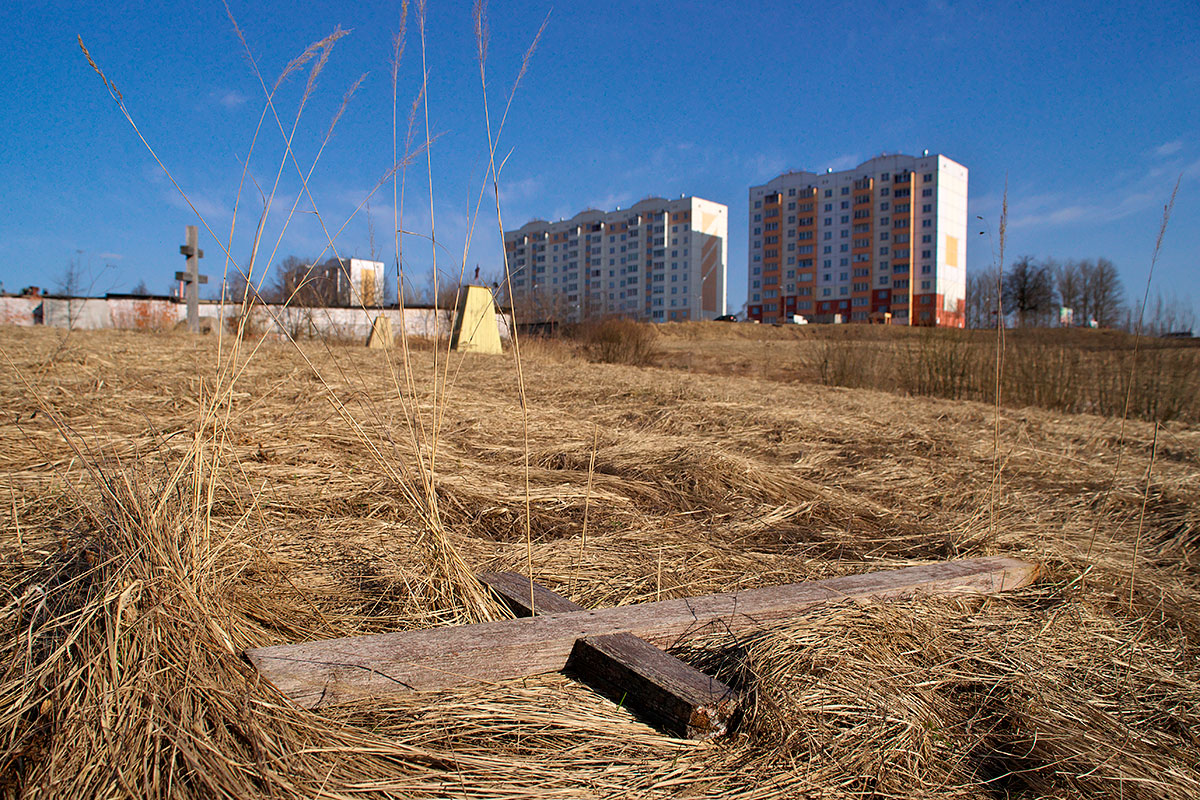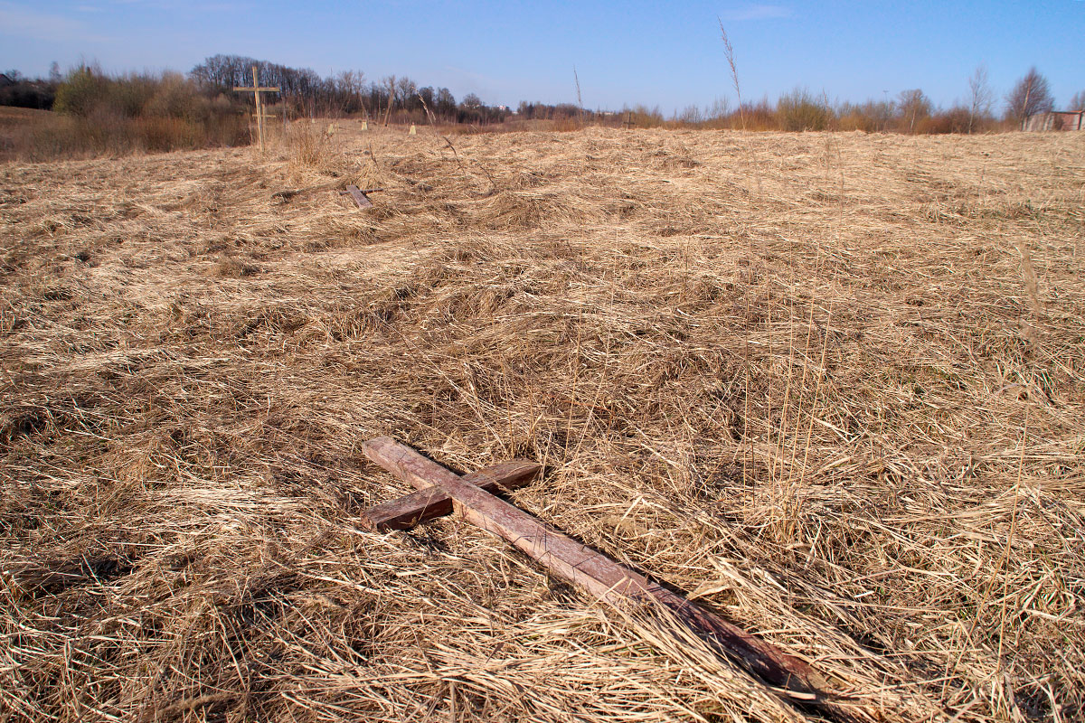 Вокруг — многочисленные следы палов травы. От огня деревянные кресты и обелиски-пирамидки со звездами сберегли канава и небольшое болото, которые находятся на территории захоронений.