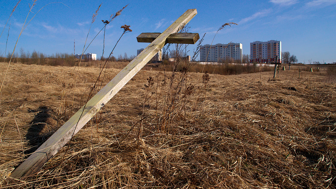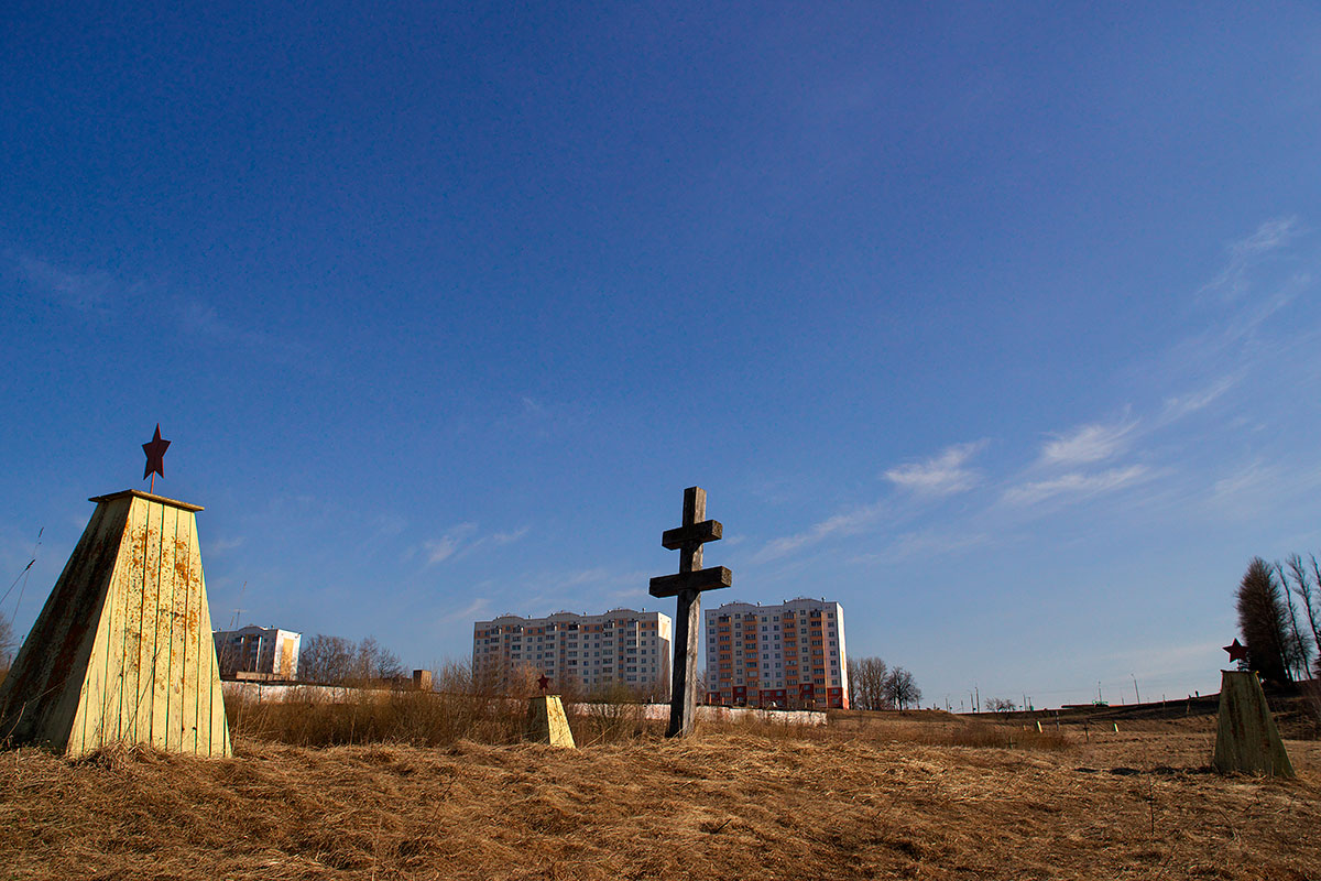 Крестов, которые остались стоять, — не намного больше. А ведь когда-то они огораживали весь периметр участка с братскими могилами. В начале 1990-х эти деревянные символы памяти установили неравнодушные горожане.