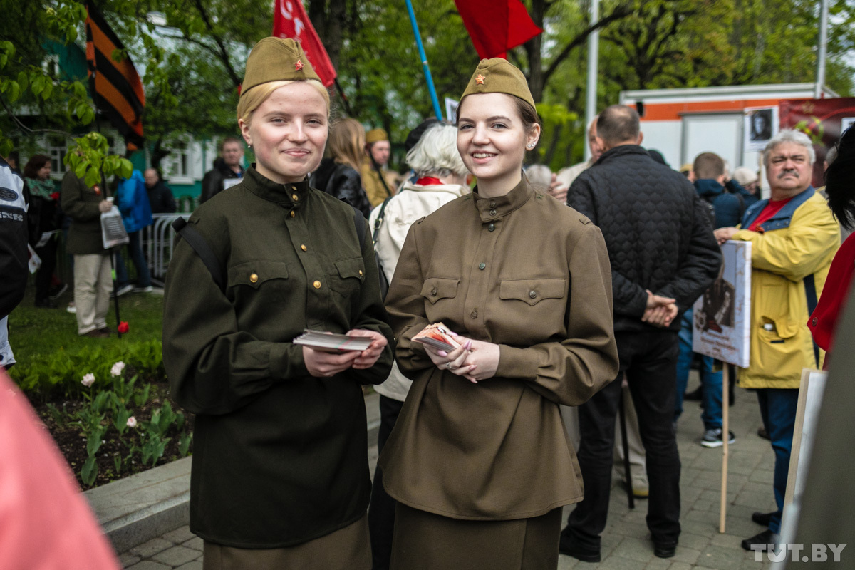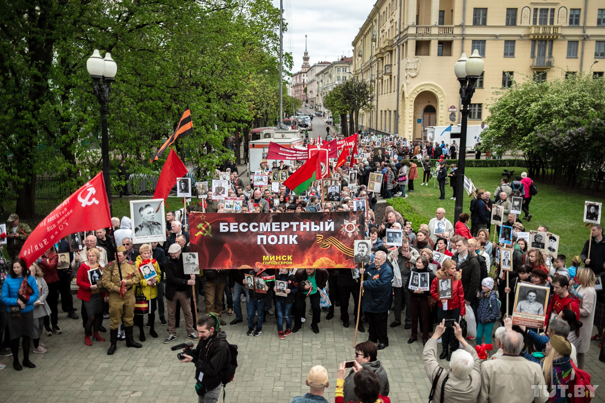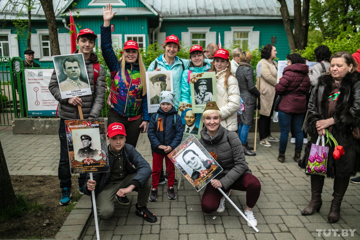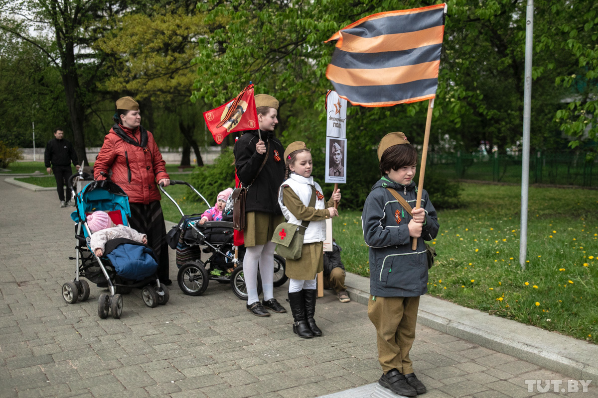 Организаторы просили разрешить им пройти шествием от площади Якуба Коласа до площади Победы, но власти разрешили собраться у Дома-музея РСДРП. Большинство участников — люди пенсионного возраста, но есть и молодые семьи с детьми. Люди пришли на акцию с портретами своих родных, которые воевали. Георгиевские ленточки на месте раздают бесплатно, флажки «С праздником Победы» продают — от 50 копеек до 4 рублей за штуку.