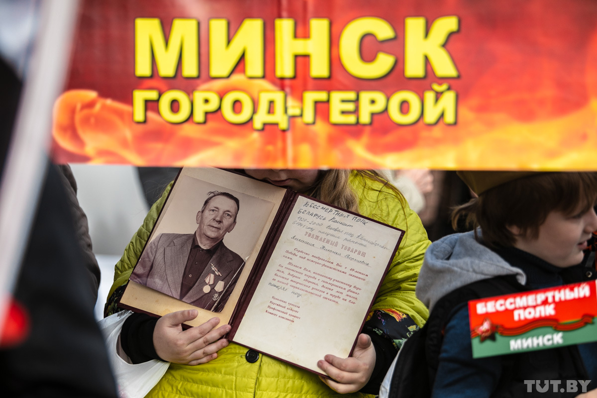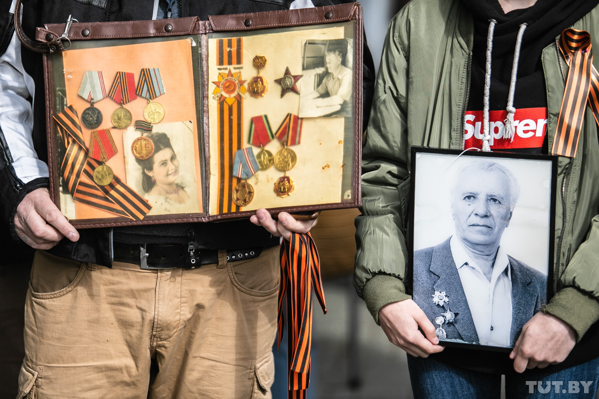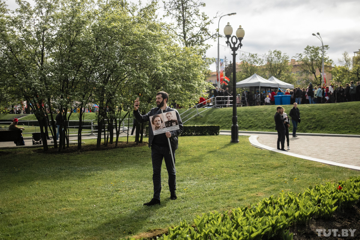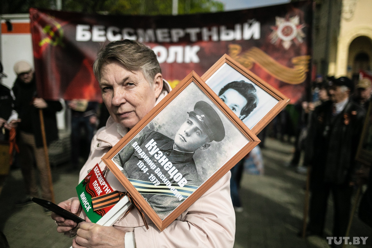 — Я назван в честь моего деда, который в 1943 году погиб в Новосибирске. 9 Мая — праздник, ради этого наши деды и проливали кровь. Скорбь у нас 22 июня, когда произошло нападение на Советский Союз. А сегодня надо праздновать, — говорит он. — Акция «Беларусь помнит» — это хорошо, но такое шествие должно быть 3 июля, в день освобождения Минска. А сегодня — международная акция «Бессмертный полк». У меня один дед — белорус, другой — русский, еще в роду были украинец, татарин. Это их общая победа. А получается, акцией «Беларусь помнит» мы разделяем победу на вашу и нашу. Если бы нашим дедам сказали, что мы будем делить их победу, они бы в гробу перевернулись.