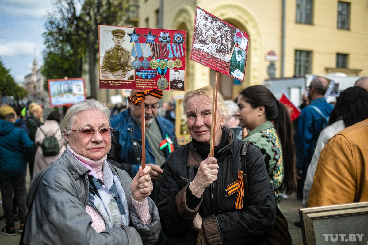 — Посмотрите на медали, они все на георгиевских ленточках, — женщины распечатали фото отца военных лет. — Мы не против белорусского флага, мы здесь выросли. Мы не против символа «яблоневый цвет» на 1 Мая, но не на День Победы. Сегодня должна быть только георгиевская ленточка, это святое.