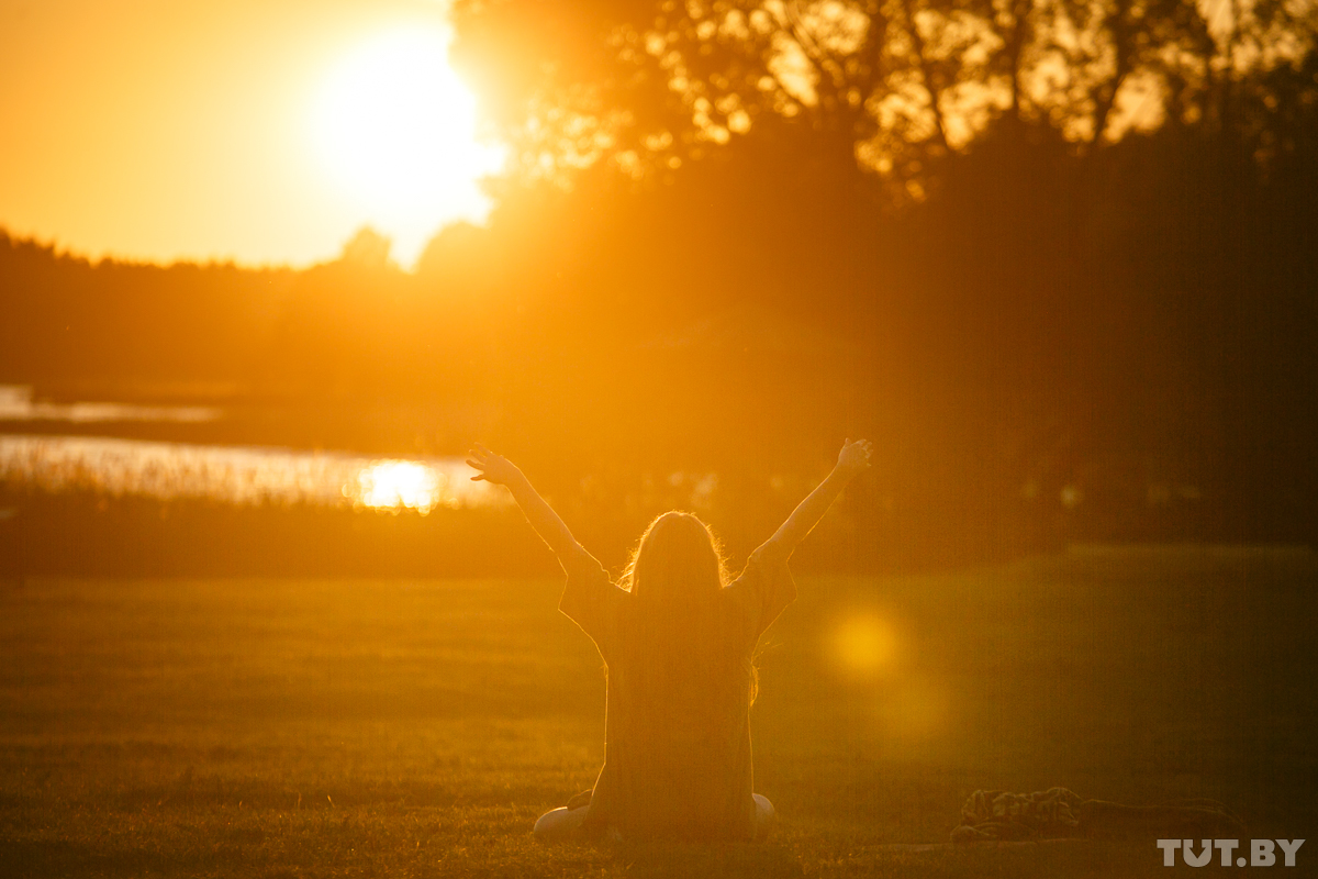 Девушка занимается йогой около одного из Браславских озер. Фото: Вадим Замировский, TUT.BY