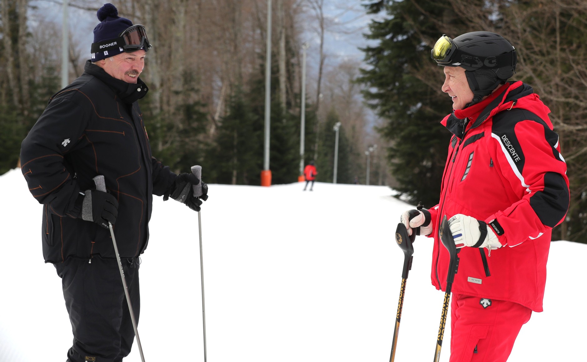 Президент рассказал, что катался на лыжах в шапочке, которую подарила Дарья Домрачева, а штаны на нем были не от фирмы Descente, от какой-то другой.