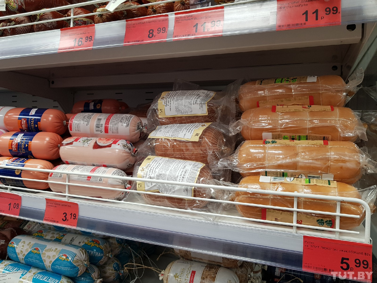 Колбас и сосисок совсем немного, в магазине есть один небольшой холодильник для рыбы, но в основном мясо и рыба продаются в консервах.