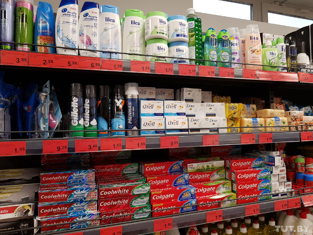 Бренды в основном узнаваемые, но встречаются и малознакомые. Мыло Q’rell упаковкой похоже на Dove, но цена в два раза ниже, — такие товары на витрине расположены по соседству.