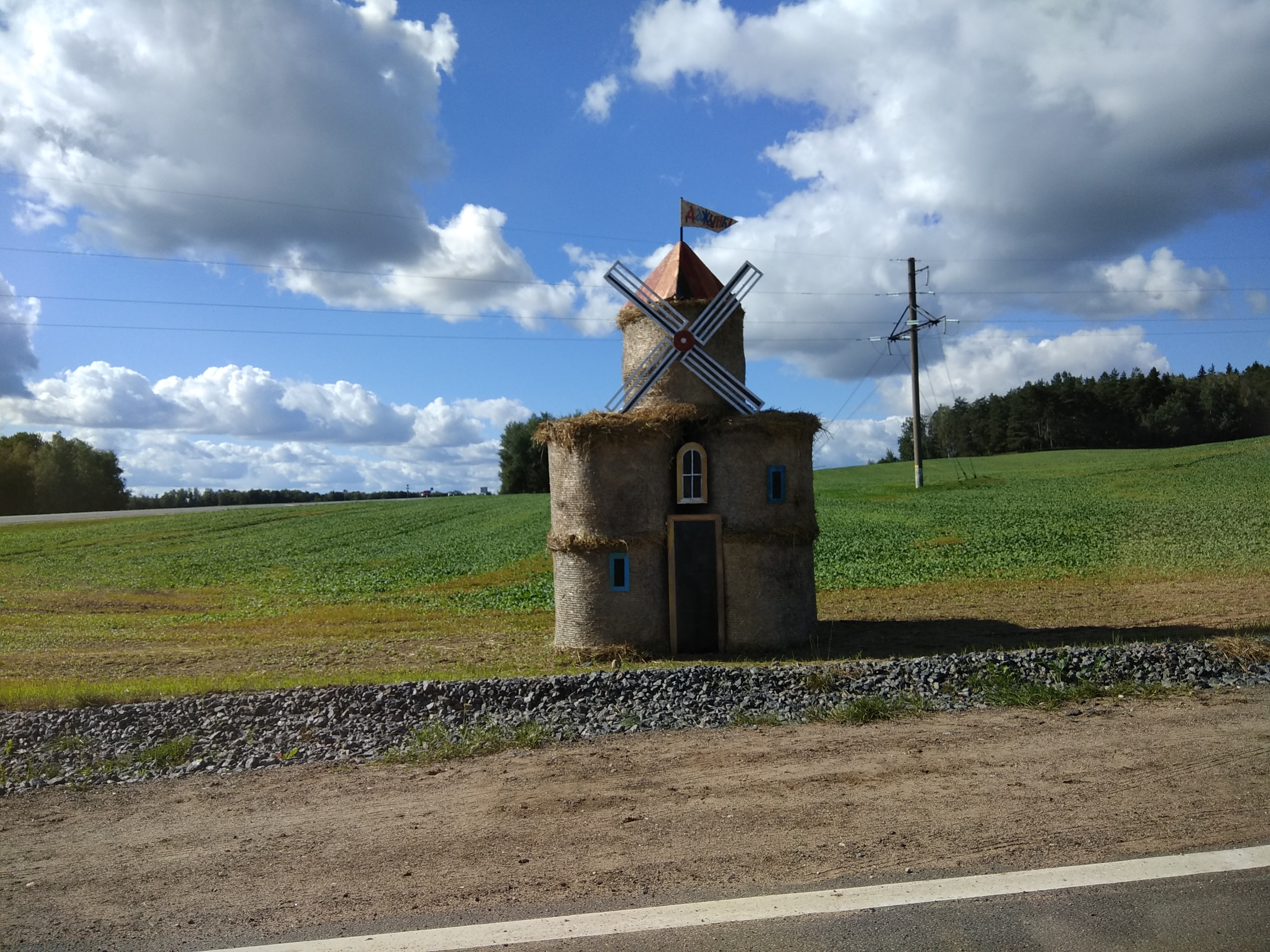 Фотографию этой фигуры прислал Евгений. Она стоит на поле рядом с дорогой Р43 недалеко от деревни Гулевичи