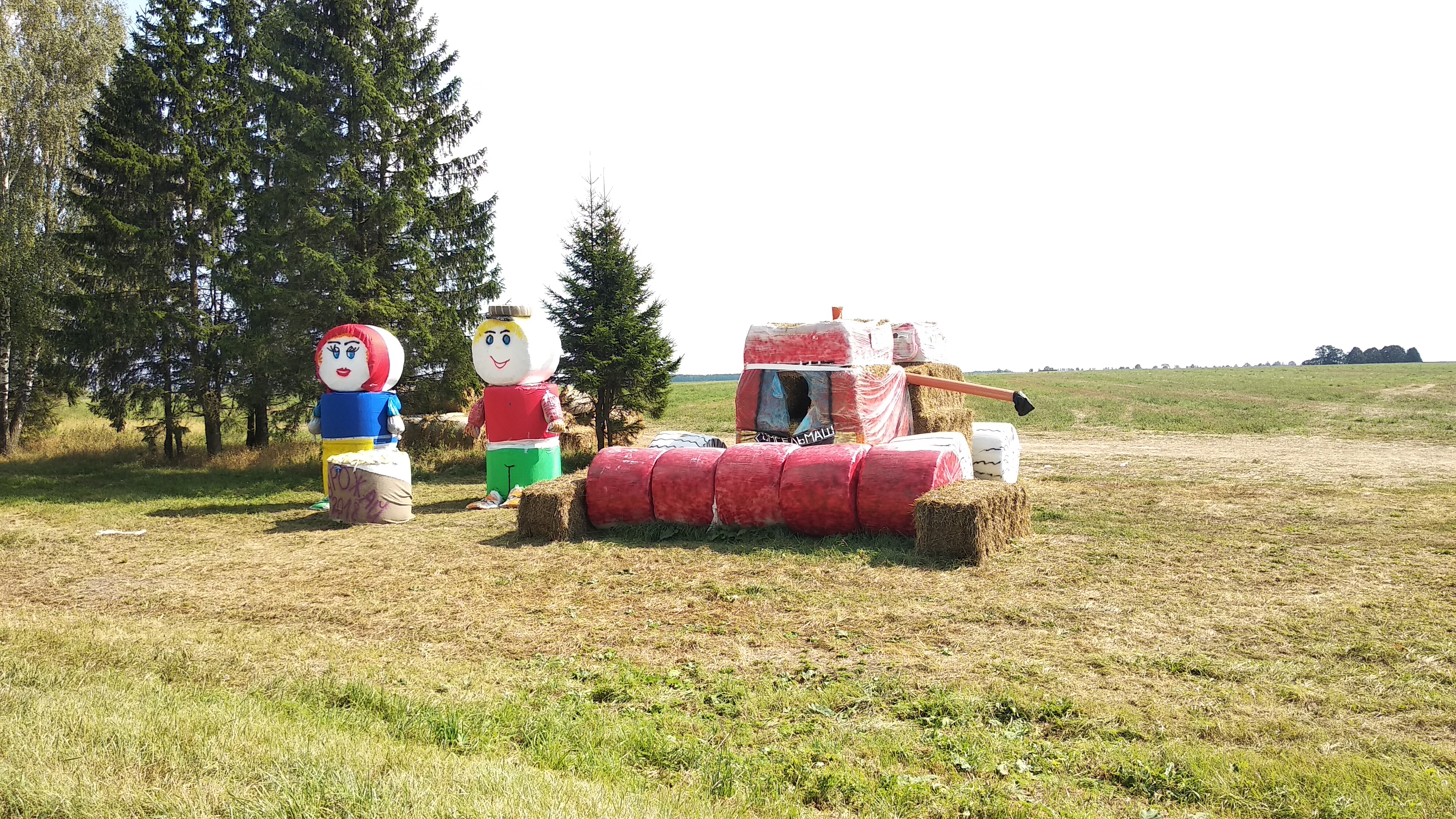 Недавно мы попросили читателей прислать фотографии фигур из соломы, которые они встречали в этом году на белорусских полях. Ведь каждый год перед «Дожинками» можно заметить необычные композиции. Как правило, фигуры достигают высоты в несколько метров и их тематика посвящена сельскому хозяйству. Смотрите сами.