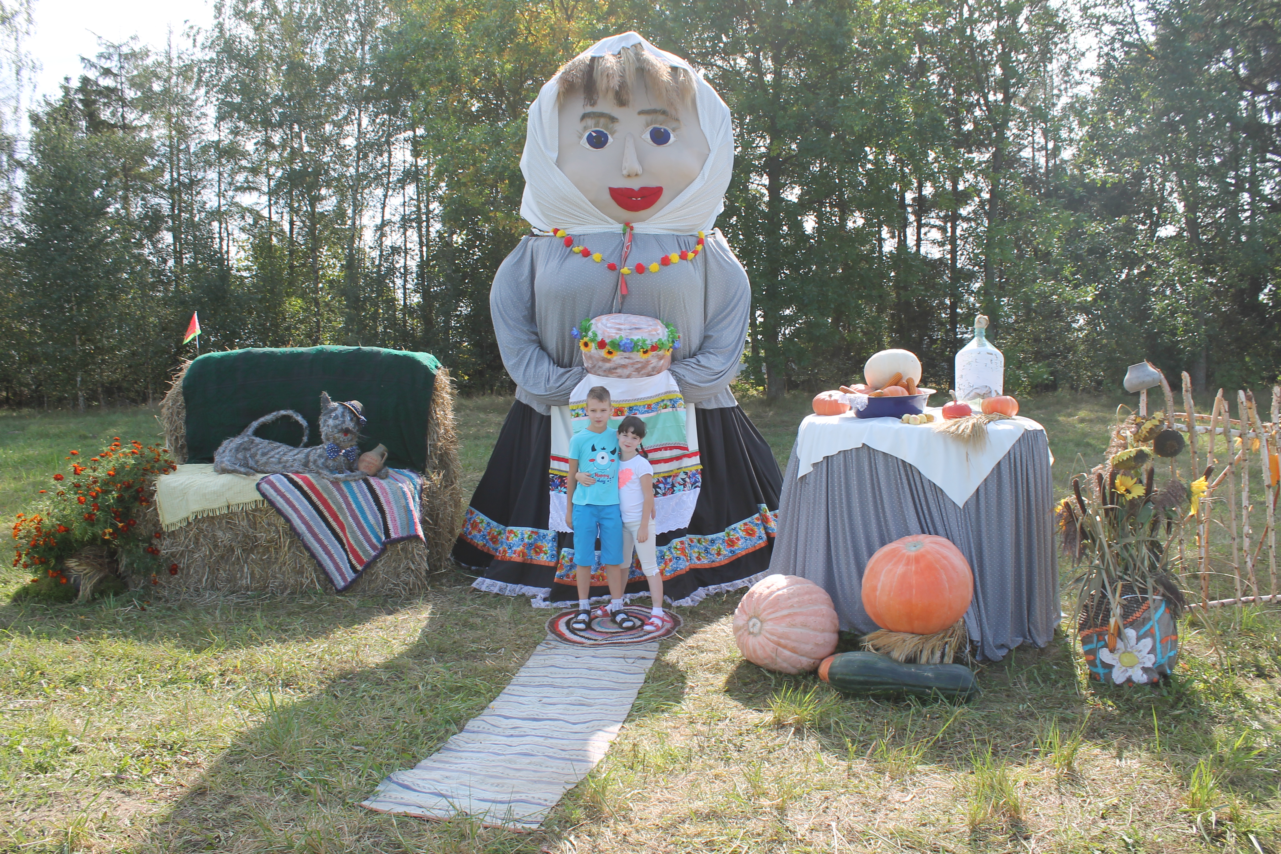 Фигуры в Каменецком районе. Фотографию прислал Виталий Прихач, на ней рядом с соломенной композицией его дети Павел и Надежда