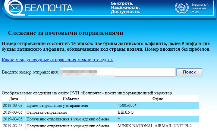 В начале марта Евгений Михайлович заказал товар в Китае. На сайте, где можно отследить данные о посылках, указано, что в Беларусь его бандероль прибыла в том же месяце. Но как ее получить, мужчина не знает.