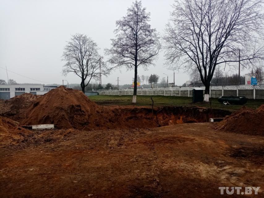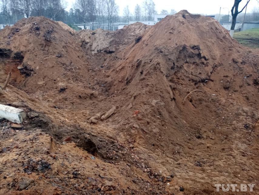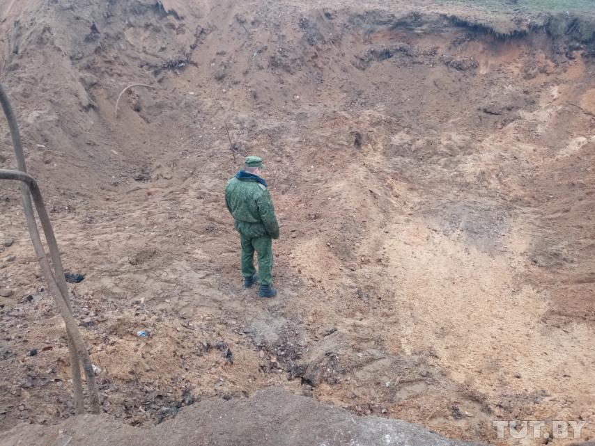 На снимке видно, что у края ямы стоят военные и сотрудники жилищной службы. Фото: пользователь TUT.BY