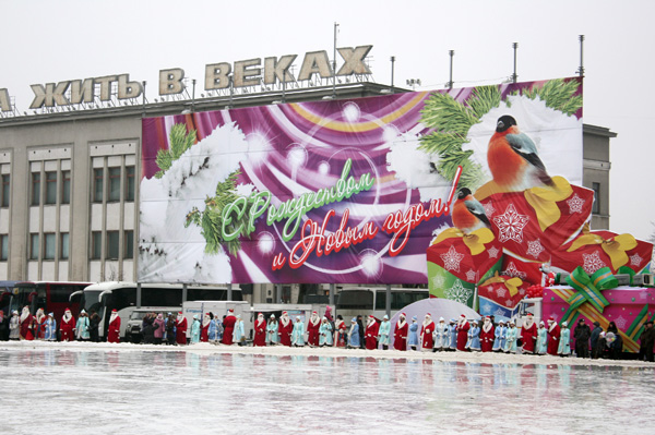 Наши фото запечатлели, как выглядела площадь в 2009 году во время парада Дедов Морозов и Снегурочек. Тогда на Октябрьской еще не было офиса velcom — его достроили в 2012 году. А герои репортажа стояли на фоне музея Великой Отечественной войны, который находился около Дворца культуры профсоюзов с 1966 по 2014 год.