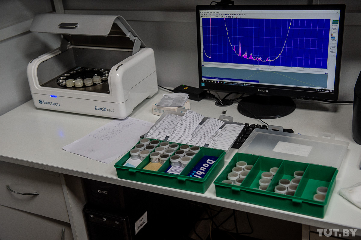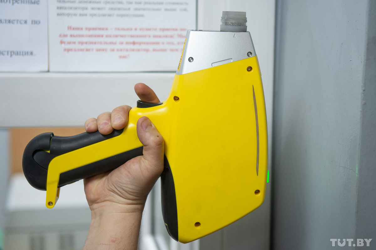 А вот измерения между лабораторными показателями и результатами прибора для экспресс-анализа, которым обычно пользуются перекупщики, могут отличаться практически в два раза. Для наглядности Мирослав Таразевич берет протокол проведенного на наших глазах исследования: программа рассчитала, что за килограмм данного катализатора автовладелец получит 524 рубля. При весе порошка в 1030 граммов из кассы человек заберет порядка 540 рублей. «Простреливаем» этот же образец пистолетом: показатели содержания драгоценных металлов почти в два раза ниже. Согласно им, перекупщики заплатили бы человеку около 250 рублей.