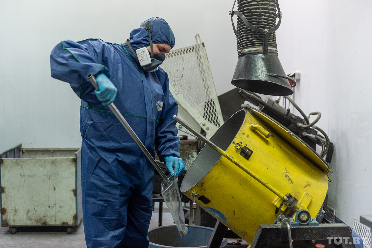 Полученный материал Михаил складывает в емкость, туда же кисточкой смахивает остатки субстанции со стола. Начальник центра первичной переработки Павел Бирюков объясняет такую щепетильность простыми цифрами: