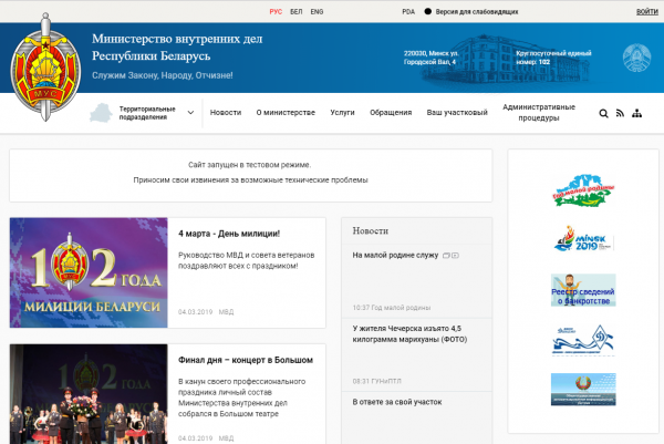 4 марта в Беларуси отмечается День милиции, ведомству исполнилось 102 года. В этот же день МВД Беларуси запустило новый сайт, который пока доступен в тестовом режиме.
