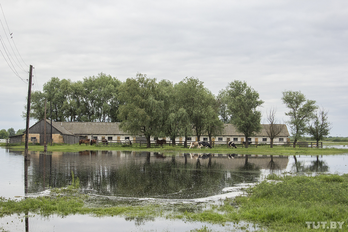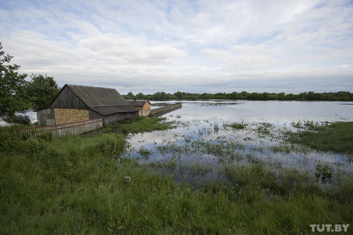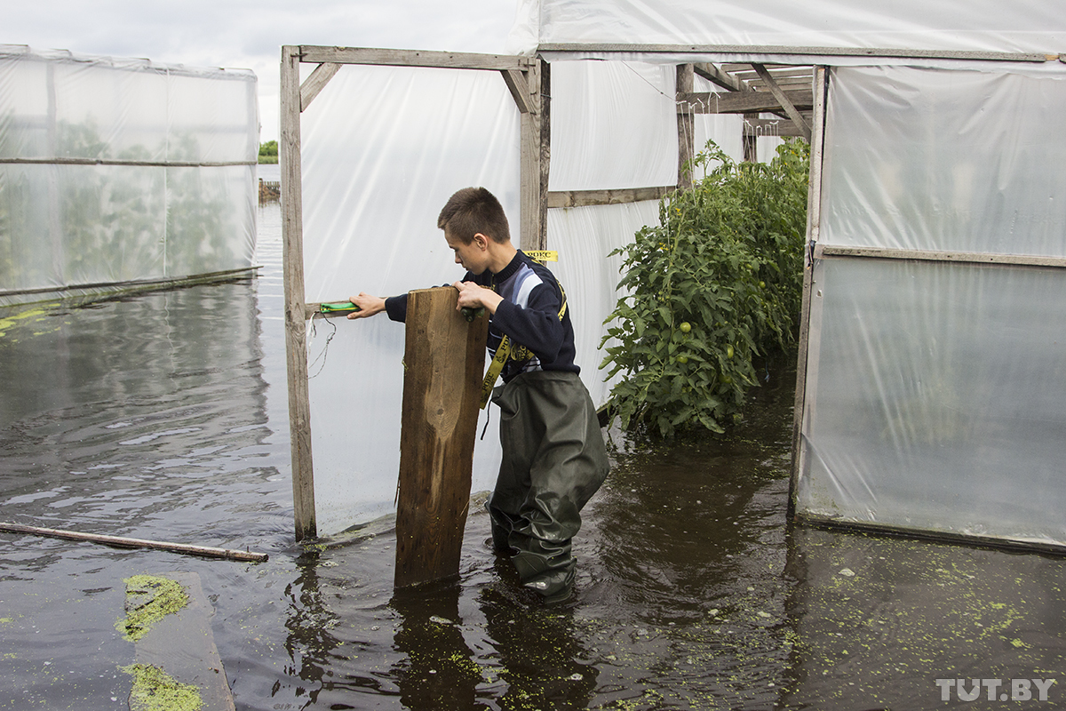 Раньше участок жительницы агрогородка Белоуша Светланы Родцевич от реки Горынь разделяло метров 200 луга. 24 мая к ним пришла большая вода — и луга не стало. Горынь подобралась к забору и подтопила капусту, а к вечеру «поплыли» огурцы в теплице. Сезон в разгаре, на рынке толпятся перекупщики, а сельчане в рыбацких сапогах спасают урожай.