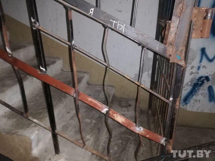 Если идешь по пожарной лестнице, на одном из пролетов можно увидеть сломанные перила
