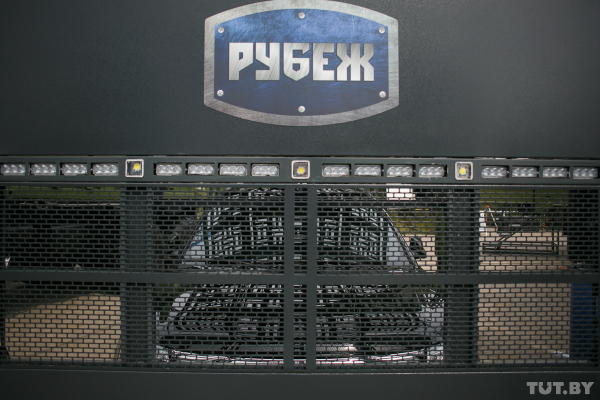 «Рубеж» комплектуется системой пожаротушения, средствами звукового давления, стробоскопами, приборами для фотофиксации. Один спецавтомобиль «Рубеж» может заменить 24 бойца спецподразделения.