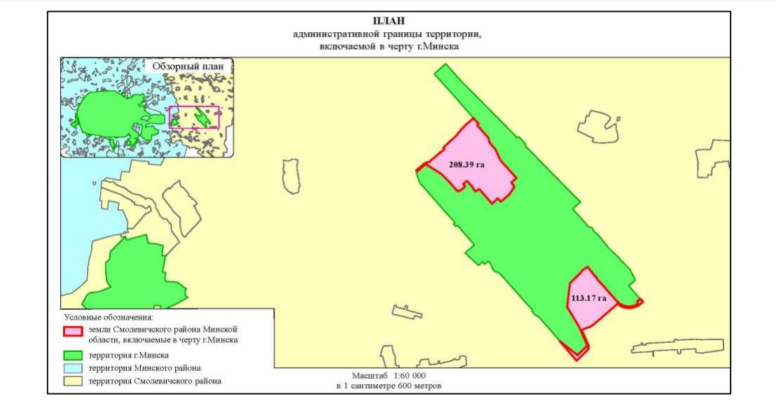 Президент Беларуси Александр Лукашенко подписал указ, которым изменил границы Минска и Смолевичского района Минской области. Документ опубликован на Национальном правовом портале.