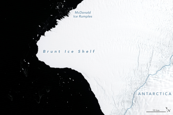 Многокилометровая трещина в шельфовом леднике Бранта ускорилась в своем продвижении, и не исключено, что скоро от относительно стабильного ледника отколется айсберг площадью более 1,7 тысячи квадратных километров — в пять раз больше Минска. Это может дестабилизировать ледник, на котором находится британская исследовательская станция Halley VIa. Об этом говорится в сообщении на сайте NASA Earth Observatory, пишет N+1.