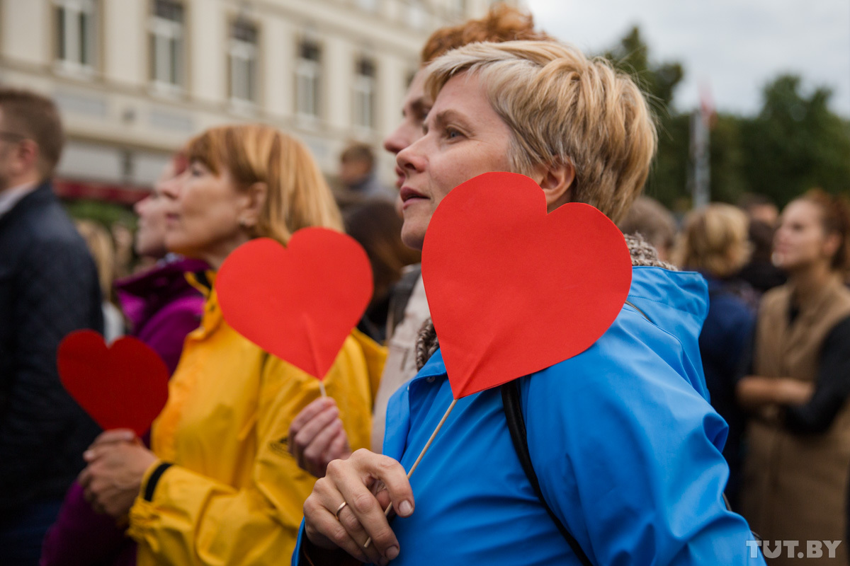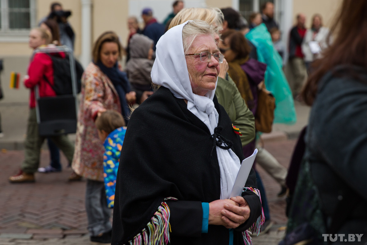 Группа белорусской молодежи в толпе выделяется сразу: в руке одной из девушек бело-красно-белый флаг. В Вильнюс они приехали компанией из 10 человек и счастливы, что местные абсолютно бесплатно приютили их как пилигримов.