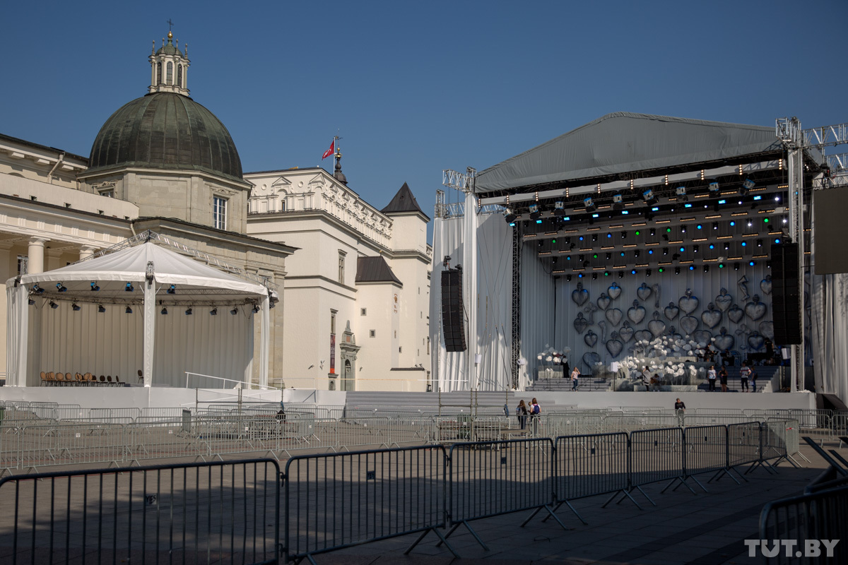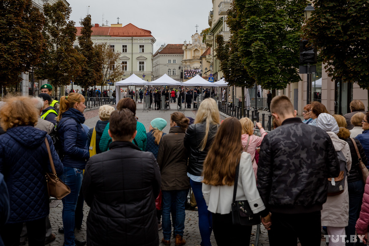По плану на Кафедральную площадь папа Франциск должен приехать в 17.30, чтобы пообщаться с молодежью. Всем остальным отведено место за ограждениями, некоторые взрослые занимают свободные места с 10 утра, за 7,5 часа до появления здесь понтифика. На Кафедральную площадь Франциск I приедет на папамобиле прямо из Острой брамы.