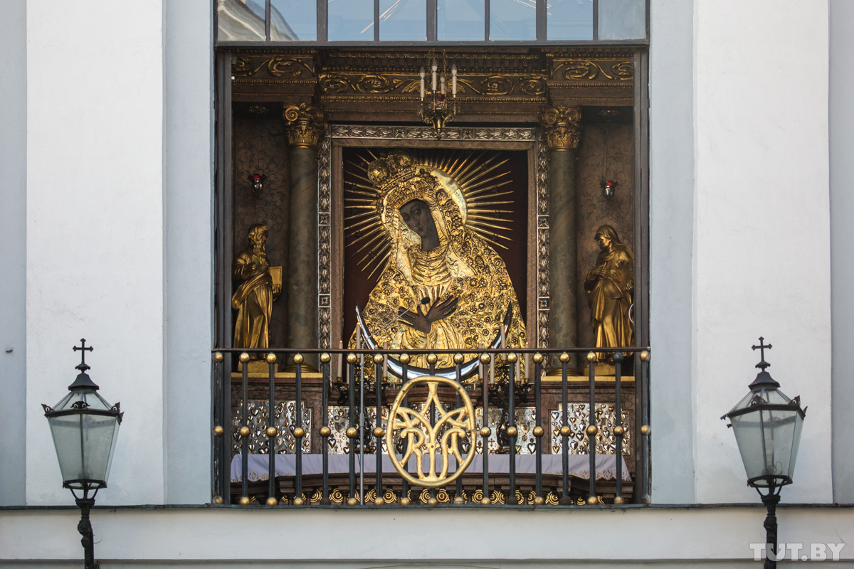 — Такие же вы увидите у образа Матери Божьей в Острой браме. Их приносят люди, которые пришли за помощью к чудотворной иконе, а затем исцелились. Кулоны отливают в виде той части тела, которая стала здоровой, и, конечно, жертвуют обычные крестики, — объясняет Лолита.