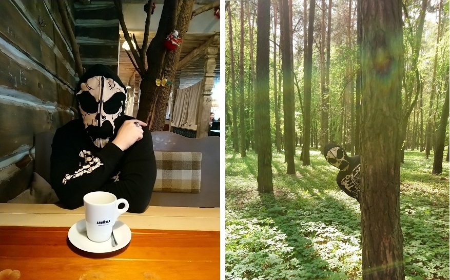 «Кирилл захотел в своей кофте [с изображением скелета]: накинул капюшон и выглянул из-за спины скульптуры. Я сделала два кадра, и мы пошли дальше, когда нам в спину крикнули: «Молодые люди, подождите, пожалуйста», — говорит девушка.