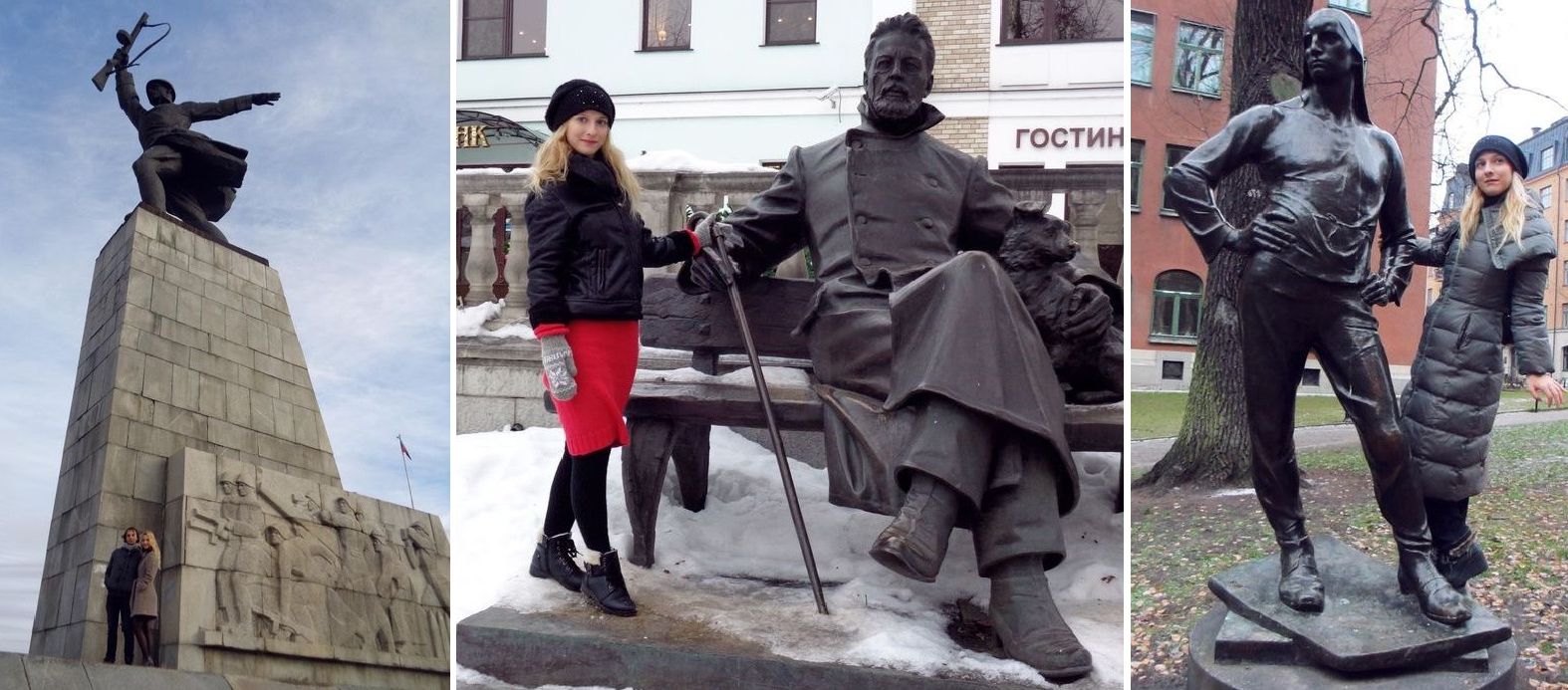У монумента «Героям битвы под Москвой» в России, памятника Чехову в Звенигороде и скульптуры портового рабочего в Стокгольме. А еще много скульптур по всей России, из Венгрии, Испании, Финляндии и так далее. Фото предоставлено TUT.BY героиней материала Ириной Н.