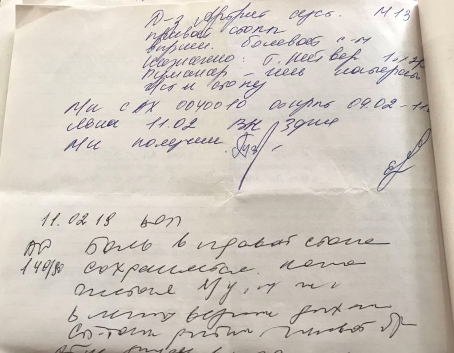 — Выполнял все назначения терапевта, а лучше не становилось. Нога все равно опухшая и сильно болела. 18 февраля пришел к терапевту. Она мне: «Я больше не могу держать вас на больничном, оснований для этого нет». — «А как я пойду на работу с такой болью?» — «Хотите, можете ехать на ВКК (врачебно-консультационную комиссию), но и там больничный вам все равно закроют».