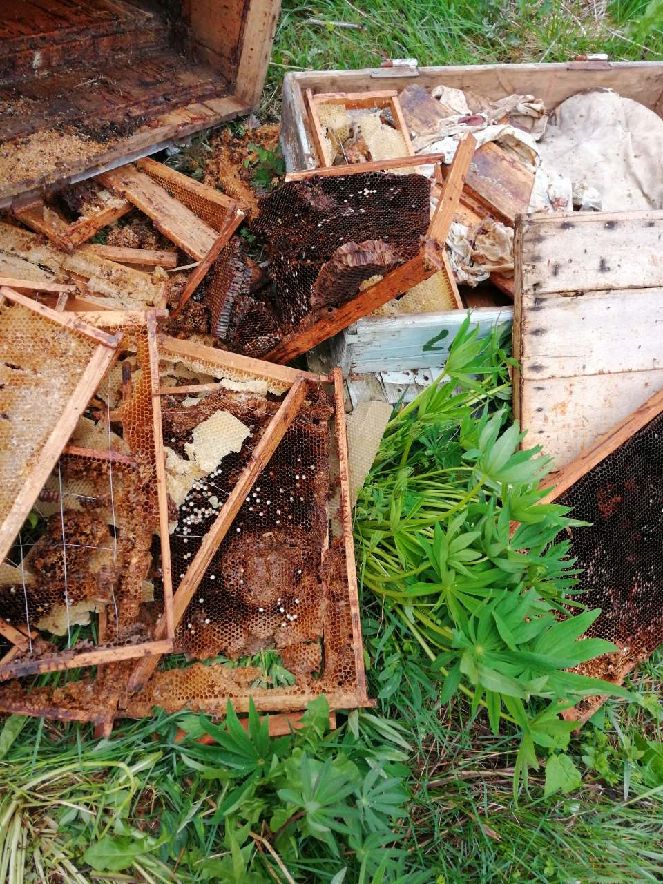 Медведь, уходя с пасеки, разбросал рамки с сотами. Фото: Виталий Маковский