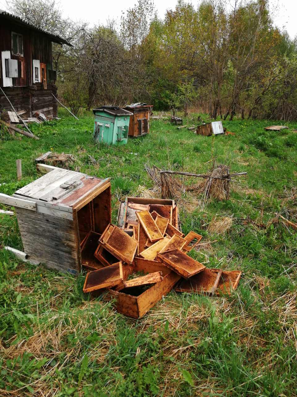 Разоренная медведем пасека в деревне Шпаково. Фото: Виталий Маковский