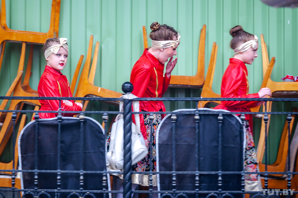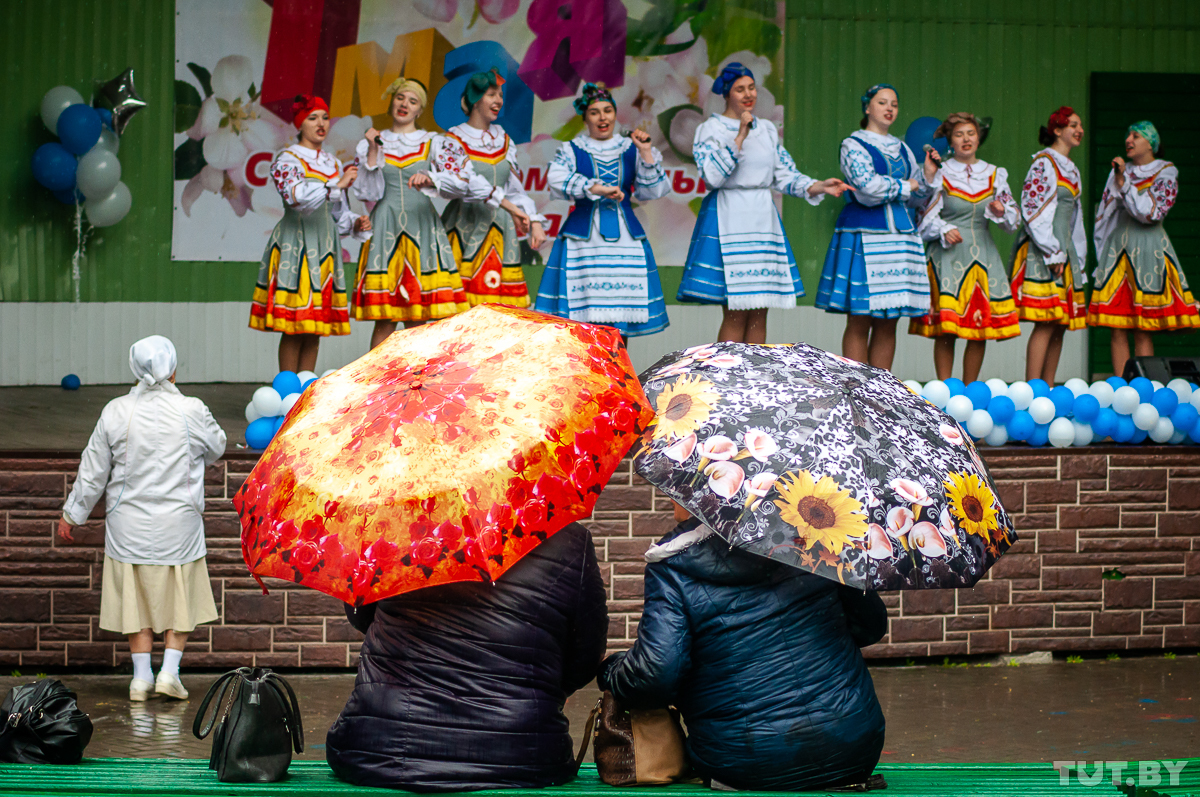 Программа Первомая в Гомеле включала в себя парад профессий, торжественное шествие, водную регату и прочие массовые мероприятия — но все пришлось отменить из-за зарядившего после обеда дождя. Состоялся лишь концерт на летней эстраде в парке. Самые преданные его зрители — ответственные за мероприятие профсоюзные деятели да родные выступающих артистов.