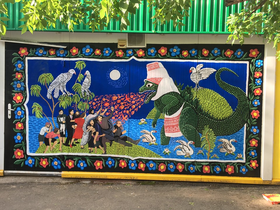 • В Молодечно появилось новое граффити. Оригинальное, да. Вам тоже напоминает Годзиллу в вышиванке?