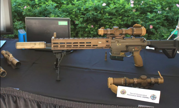 Американские военные работают над повышением огневой мощи небольших пехотных подразделений. Для этих целей была инициирована программа создания марксманской винтовки United States Army Squad Designated Marksman Rifle (SDM-R). На днях стало известно о проведении испытаний первой партии винтовок SDM-R под патрон 7.62×51 на базе Fort Bliss в Техасе. Первые 120 таких снайперских винтовок тестировали военнослужащие 82-й воздушно-десантной дивизии.