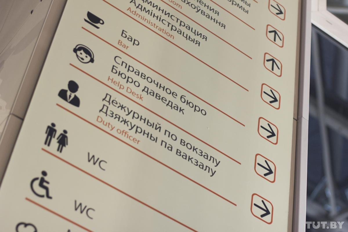 Информационные стенды и вывески на новом автовокзале в Бресте оформлены на белорусском, русском и английском языках. Объявления также озвучиваются на трех языках. Венчает здание надпись «Аўтавакзал Брэст».
