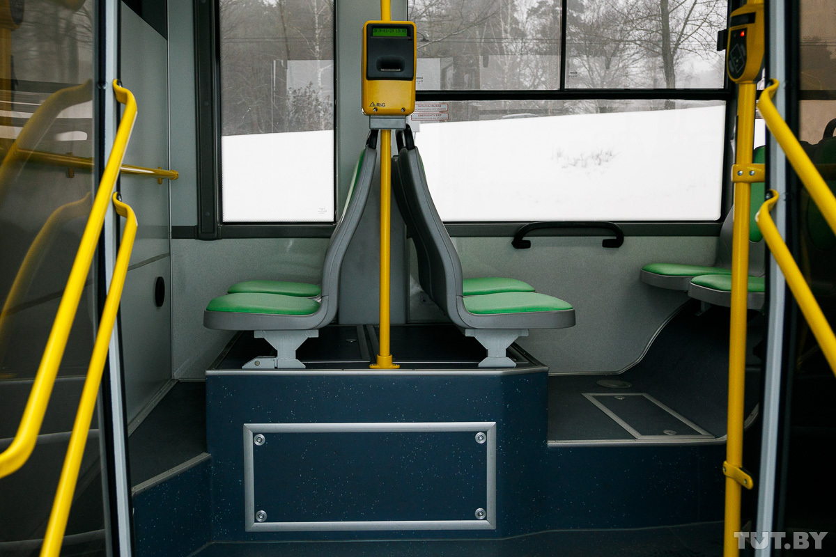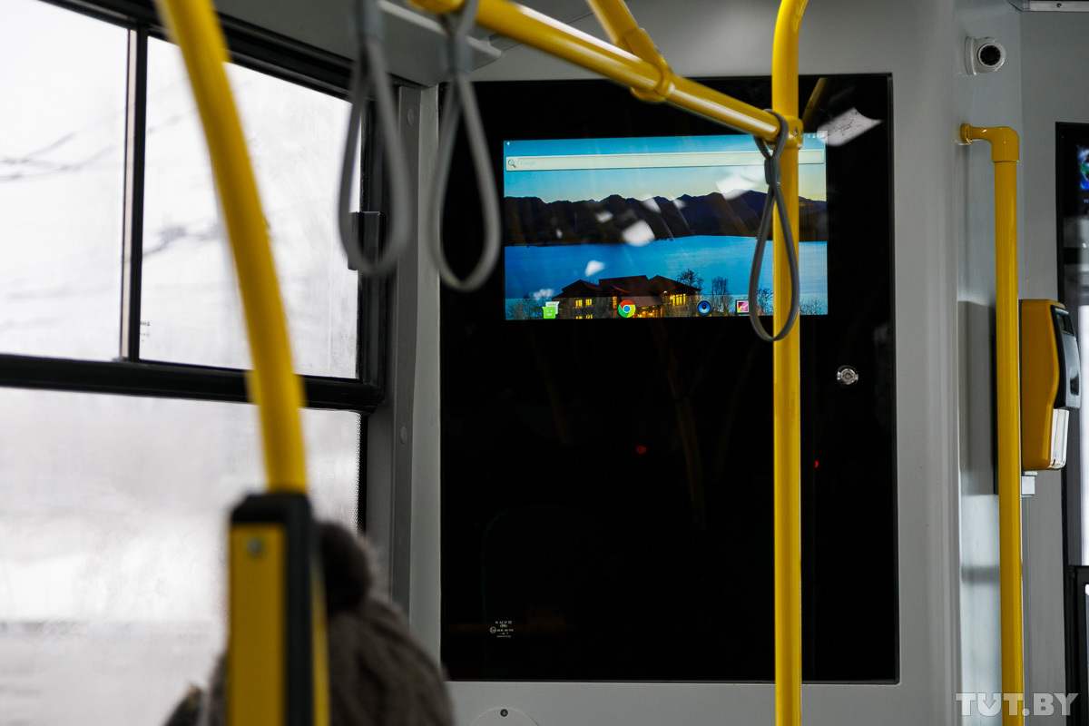 Из новинок в салоне замечаем монитор, который установили вместо перегородки электрошкафа, на которой раньше была глухая металлическая дверь. Тут будут крутить рекламу, объявлять остановки.