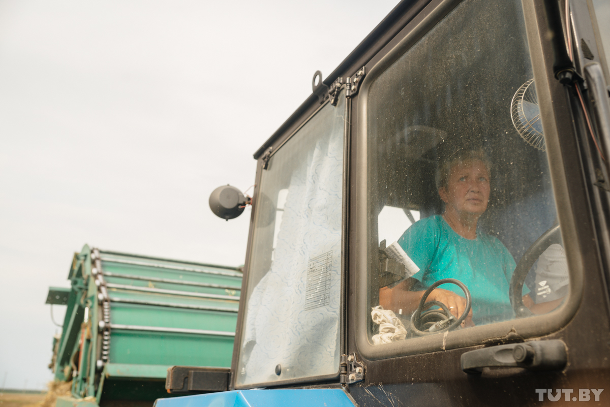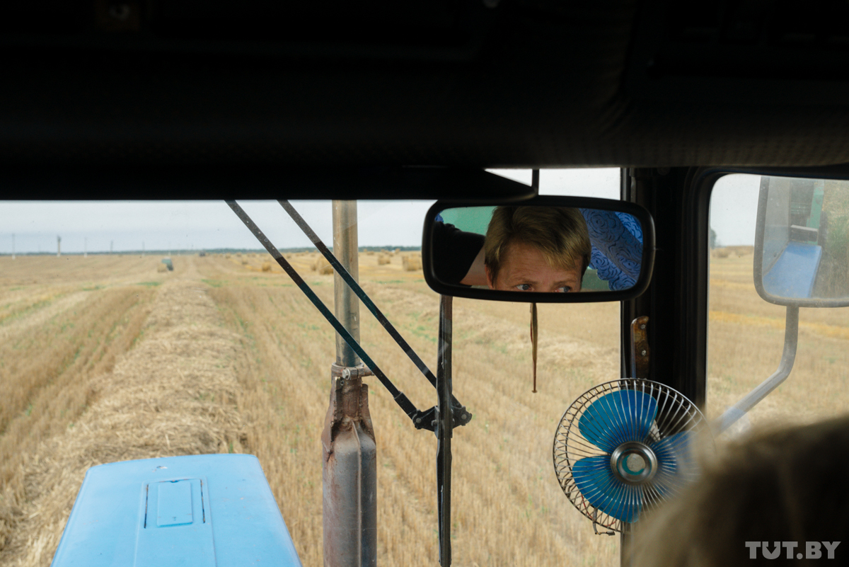 За бортом ее «Беларуса» сегодня 29ºC, а внутри все 35ºC. И это, говорит Елена, нормально. Бывают дни и 45 показывает. Кондиционеров в президентском подарке не предусмотрено. Только вентилятор.