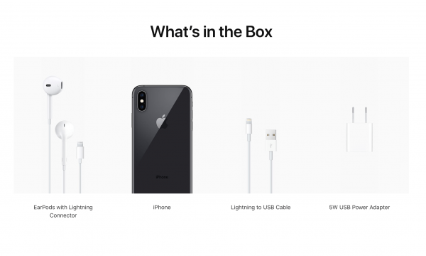 До анонса по Сети ходили слухи, что производитель добавит в комплект адаптер питания, поддерживающий технологию ускоренной зарядки на 18 Вт. К сожалению, этого не произошло, и новые iPhone Xs и iPhone Xs Max комплектуются обычными зарядниками.
