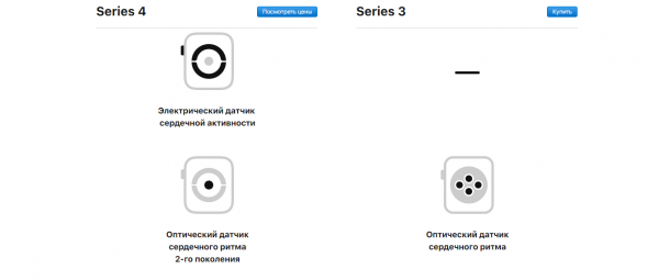 Лишь при сравнении страниц технических характеристик новой модели со старой можно найти упоминание, что в Series 4 установлен «электрический датчик сердечной активности».
