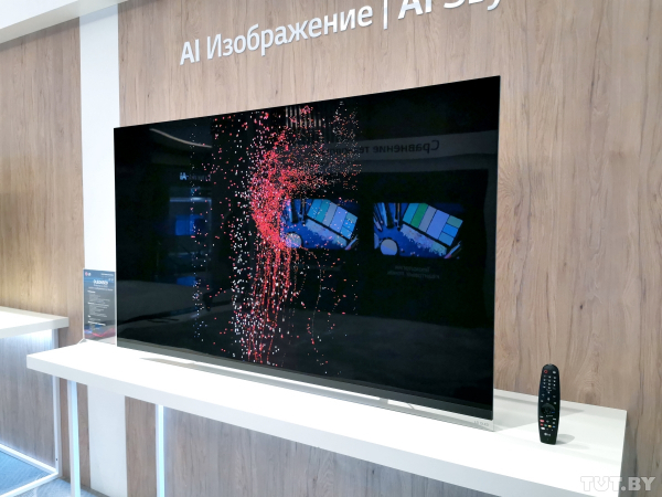 В общем, существенных различий в плане технологий (кроме матриц — IPS и OLED) с премиальной 8K-моделью мы не нашли.