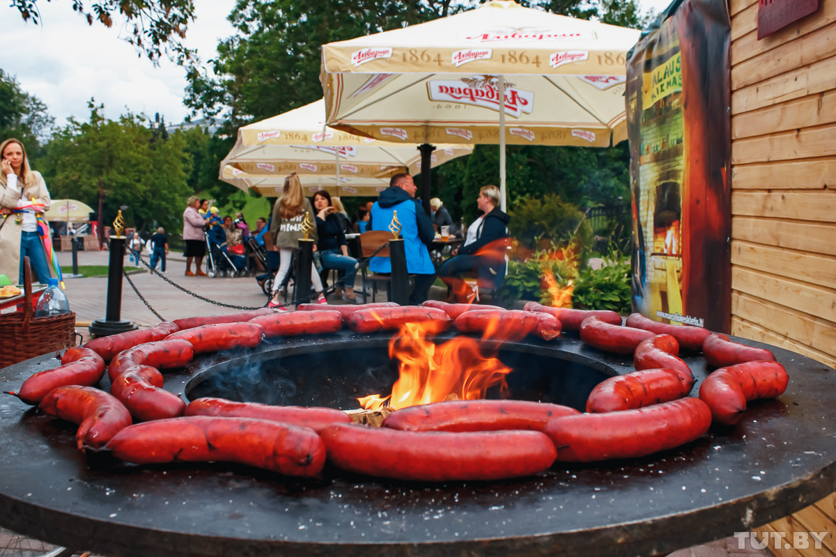На нынешнем «базаре» впервые так много фудкортов и палаток с уличной едой. Самое большое разнообразие стритфуда — на пешеходной улице Толстого. Здесь можно попробовать калининградские бургеры (штука — 10 рублей) и форшмак (5 рублей). Кафе из Владивостока готовит на пару корейские пирожки «пян-се» с разными начинками (от 5 до 8 рублей). Литовцы угощают своими национальными блюдами: тут вам и блины «жепайчу» (5 рублей), и картофельные колбаски «ведарай» (6 рублей), и цеппелины (7 рублей).