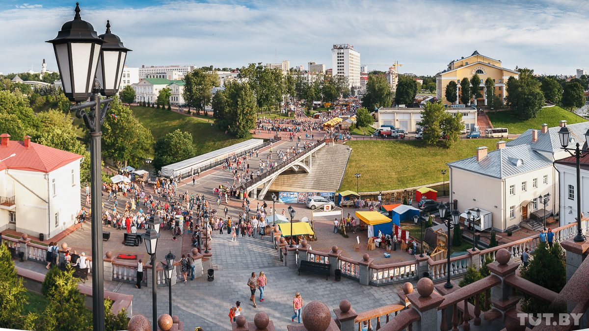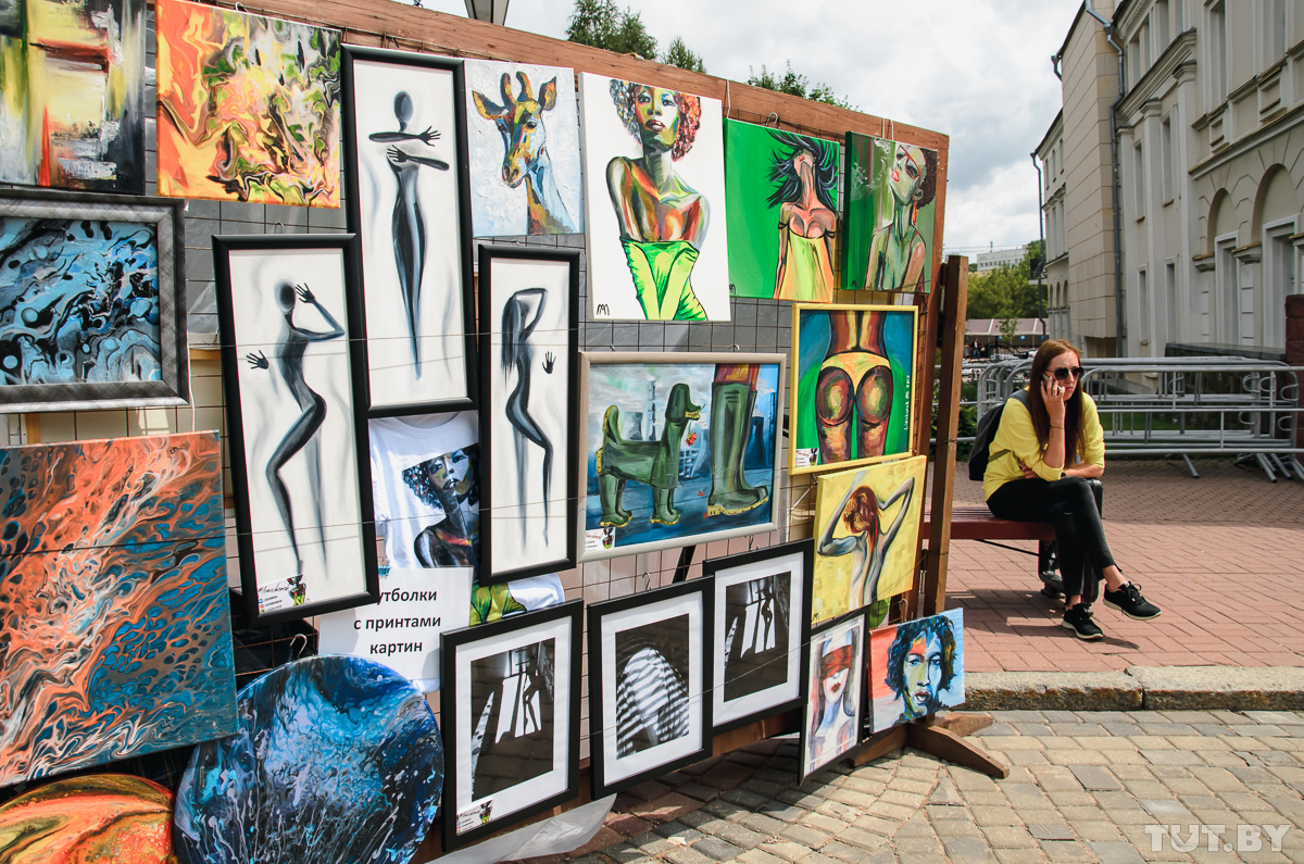 «Подходи, приценяйся, покупай, не стесняйся!» — под таким девизом живет «Город мастеров» на «Славянском базаре». Это, пожалуй, самый народный, самый любимый и самый доступный проект на витебском фестивале. Ему уже без малого 30 лет, но жителям и гостям города ни капельки не надоело толкаться в пестрой ярмарочной суматохе, прицениваться, торговаться, но в конце концов спускать на «базаре» все свои деньги. Жизнь на фестивальных улицах особенно оживает к выходным — а они обычно выпадают как раз на середину «Славянки». TUT.BY узнал, что и почем нынче продают на «базаре», чем угощают и как развлекают народ.