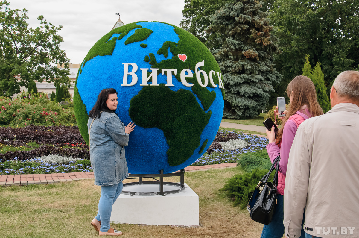 А к глобусу из искусственной травы с надписью «Витебск» — постоянная очередь из желающих сделать фото на память о фестивальном городе.
