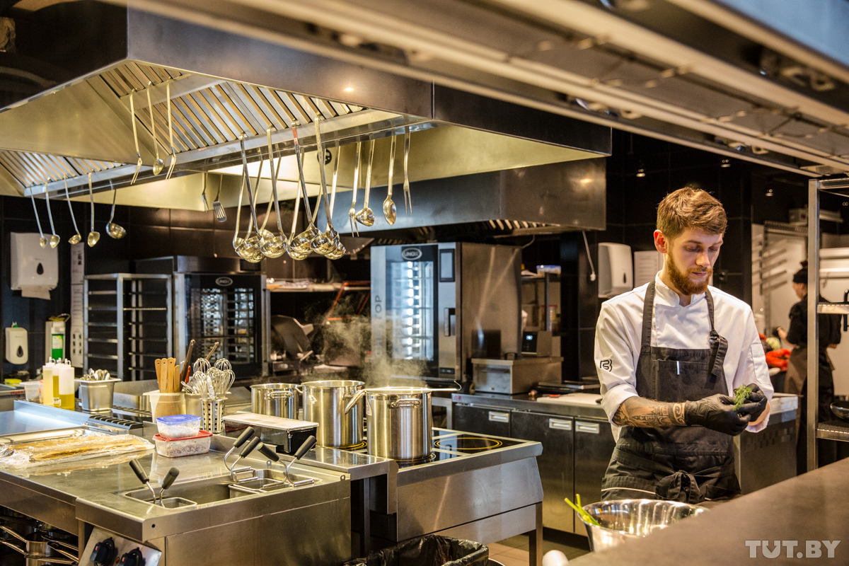 По словам операционного директора, работа заведения строится вокруг шеф-повара. Он не будет работать на процессе, его задача — знакомить гостей с блюдами, рассказывать о них. Шеф будет сам выносить в зал еду.