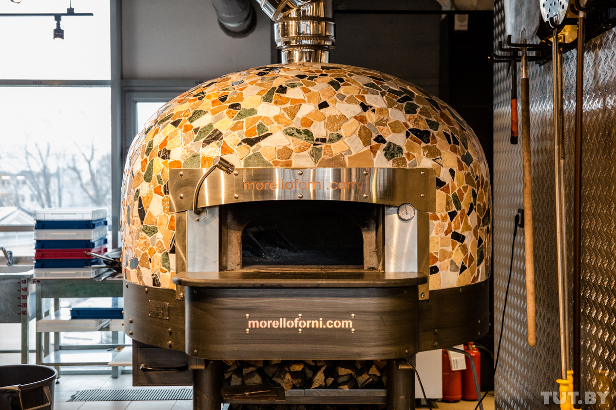 Зал рассчитан на 248 мест, тут также остался концепт открытых цехов, когда видно, как работают повара. Так сначала посетители видят raw-bar, где готовят роллы, поке боулы, тартары. Далее в специальной печи пекут неаполитанскую пиццу. Чтобы она получилась настоящей, все продукты заказывают из Италии. Рядом находится холодильник, где выдерживают мясо, а также печь хоспер. Чуть выше, уже в закрытом цеху, работает кондитер.