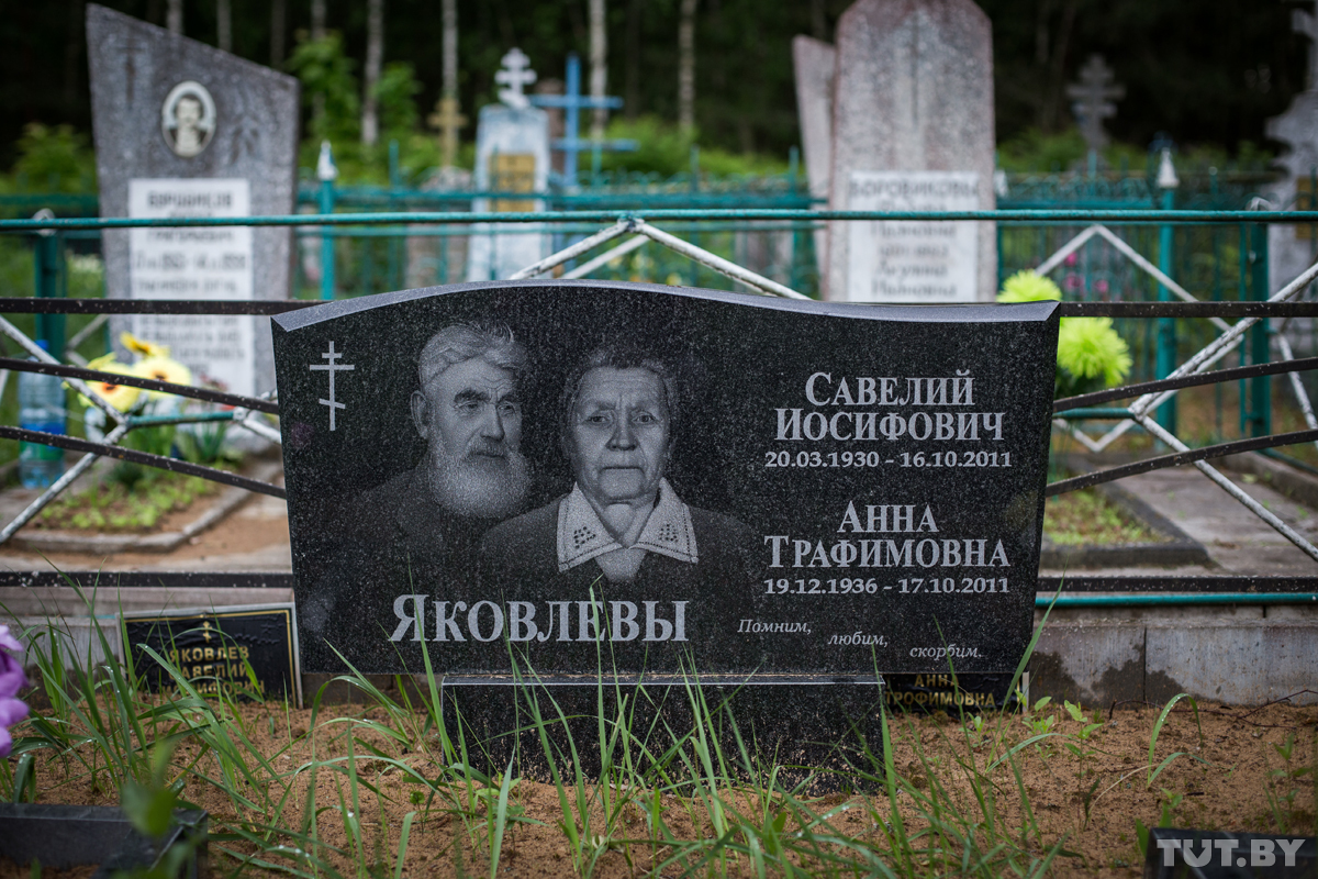 — Вось мой сябра. Забілі. Вось суседзі нашыя, там жылi троху далей да леса. А гэтых не ведаю — мо з нейкай вёскі прывезлі. Новыя магілы бачыце. Зусім навюткія. Увогуле не ведаю, хто гэта. Можа з горада прывезлі. Прывозяць, да. Вось як атрымліваецца — жылі ў вёсцы, а зараз тут усе, — философствует сын Гени.