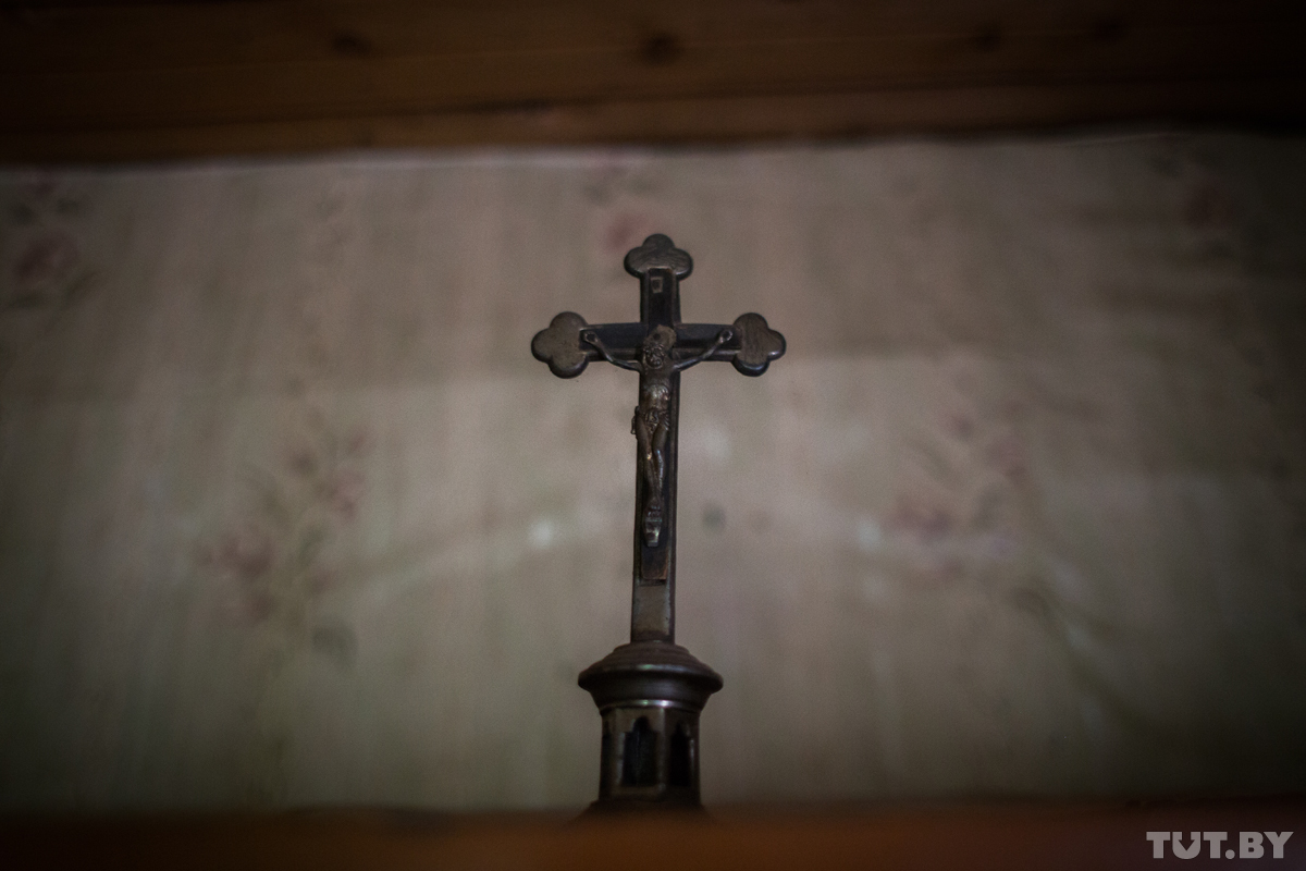 — Толькі я трымаюся ўсё, — говорит Геня. Она рассказывает, что когда-то в Мостище жило 600 человек, работала школа, была крама. — Як жылі? Добра. І з рускімі (так староверов называли в деревне, а еще — москалями, кацапами, но без всякого оскорбительного оттенка, и бегунами. — Прим. TUT.BY) сябравалі, нават нашыя некаторыя дзяўчаты замуж за іх ішлі. Па гаспадарцы ў іх працавалі. […] Кружка вісіць на заборы — каб мы, католікі, пілі. У некаторых так было. Ды і дамы ў іх іншыя, чым ў нас. Вялікія, з двумя хадамі і з добрым такім заборам, каб было не відаць, што яны там робяць. Але што рабілі? Жылі, як і мы. Дзяцей гадавалі.